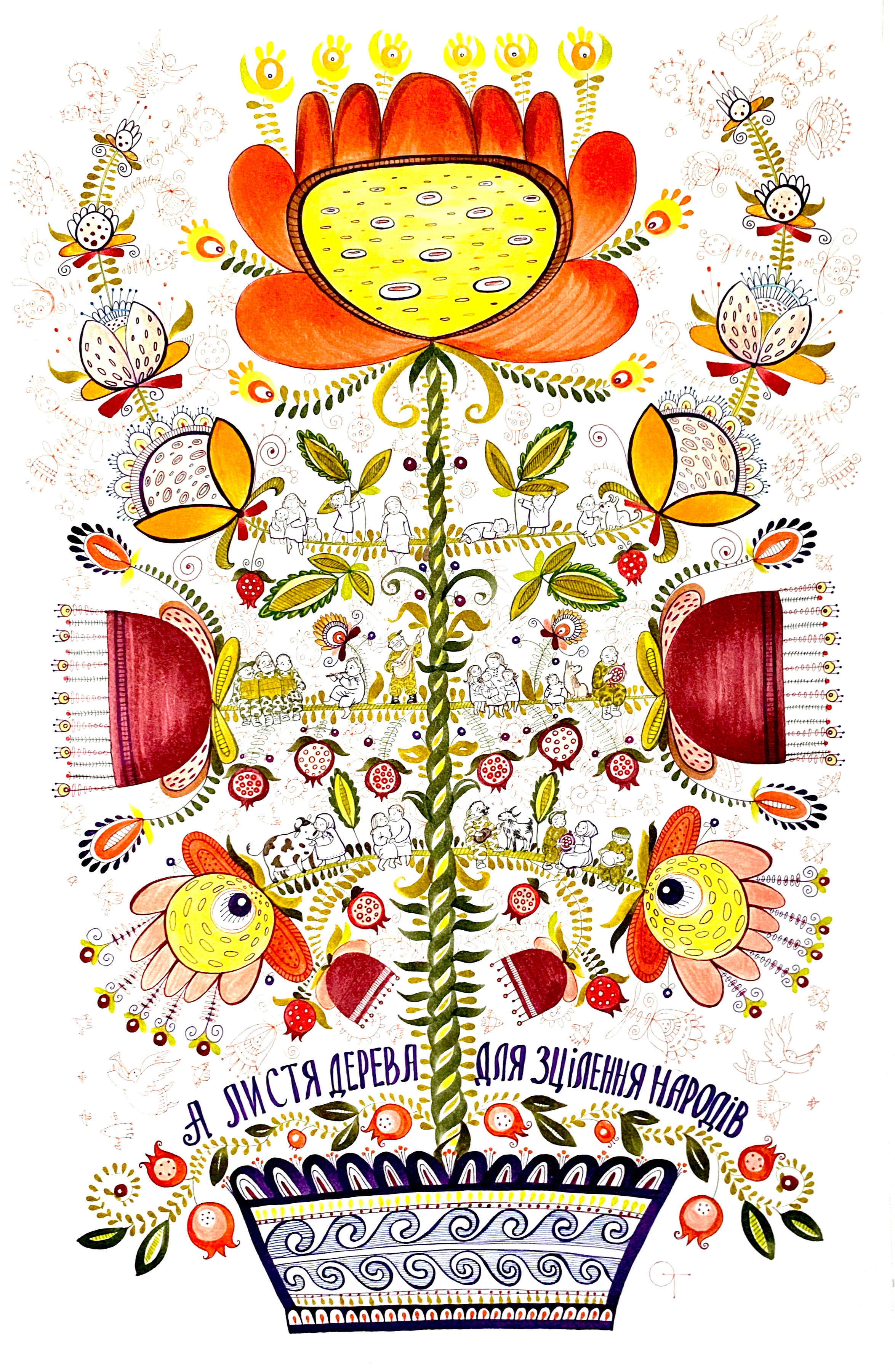 The Tree of Hope is my interpretation of the prominent Ukrainian 'Tree of Life' (Derevo Zhyttia), an ancient & sacred symbol depicted in Ukrainian embroidery & folk art.